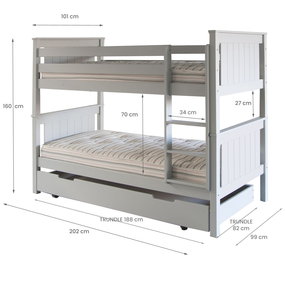 Classic Beech Detachable Bunk Bed with Storage+Sleepover Trundle in Dove Grey