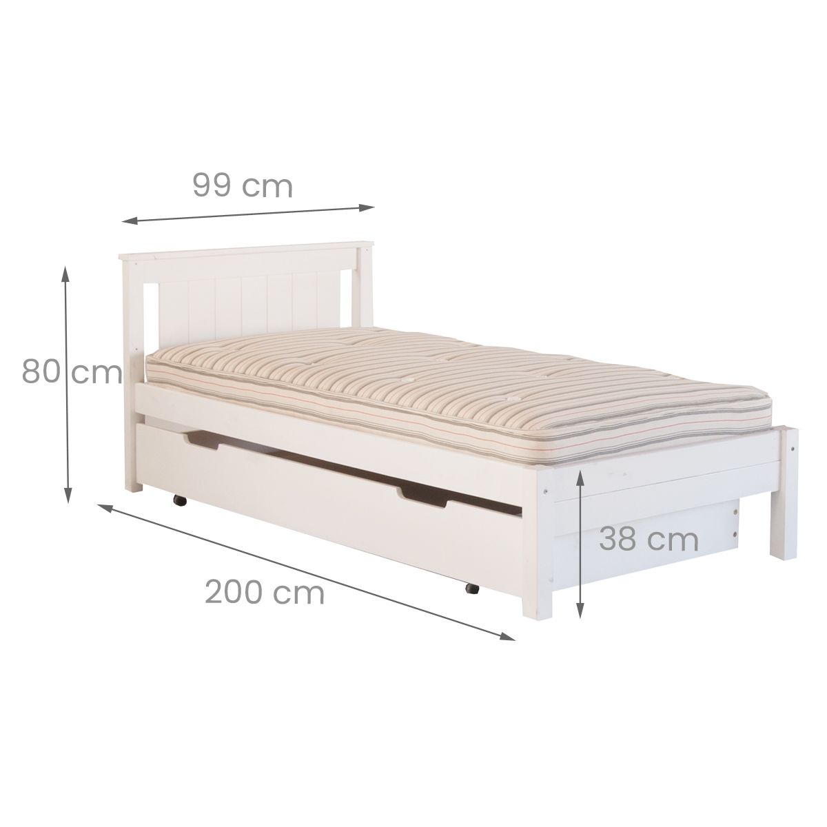 | What are the benefits? | Solid beech hardwood bed frames for improved performance and strength, and superior, durable paint finishes Solid Beech wood mattress slats - strong, allows mattress to "breathe" Subtle, Nordic modern design to tie in to any interior scheme Available in versatile Pure White and Dove Grey colours Pull out space saving storage & sleepover trundle with multidirectional castors for smooth movement |