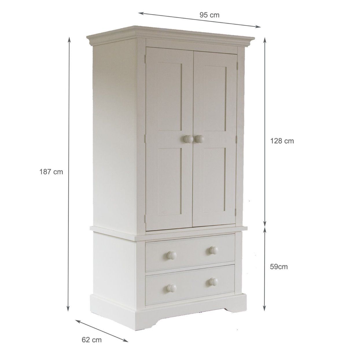 | What are the benefits? | Full width hanging rail 2 Full width, roomy storage drawers High quality dovetail jointing and "tongue and groove" drawer board bases Solid wood painted knobs Solid wood framed doors with butt hinges Range of coordinating furniture and beds |