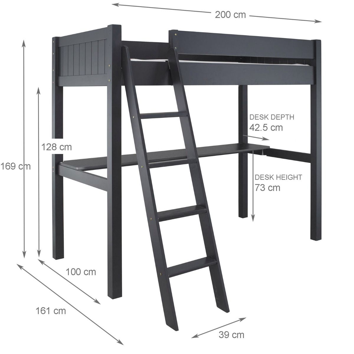 Fargo High Sleeper Loft Bed with Full Length Desk in Farleigh Grey