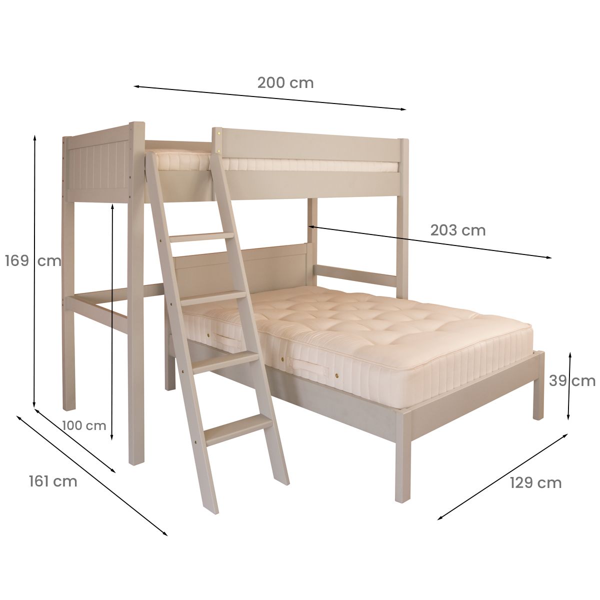 | What is included? | Solid hardwood High Bed frame Solid hardwood Small Double Bed frame Solid hardwood slatted Mattress Bases Lean-to ladder with wide treads |