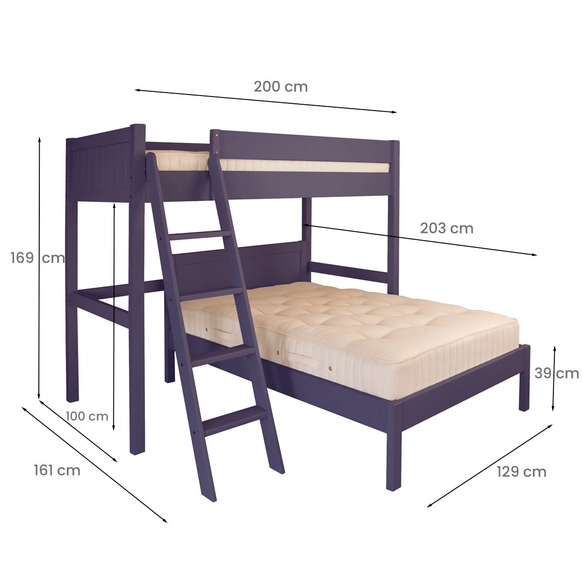 | What is included? | Solid hardwood High Bed frame Solid hardwood Small Double Bed frame Solid hardwood slatted Mattress Bases Lean-to ladder with wide treads |